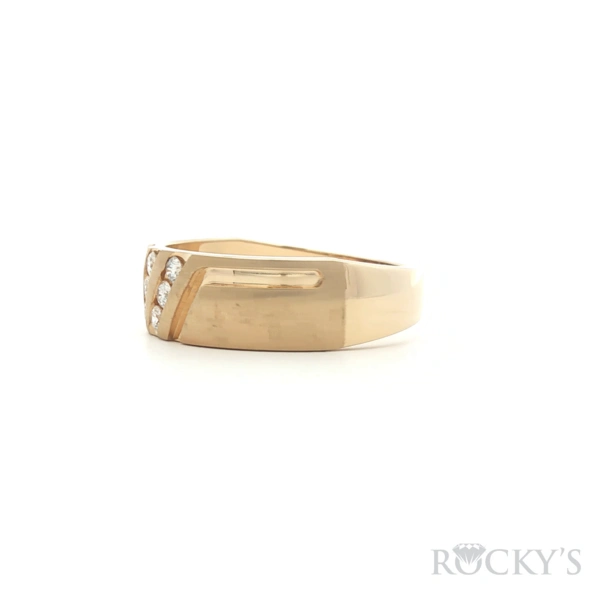 Yellow 14K Men's Diamond Wedding Band Size 10 With = 0.25Tw Round G/H SI Diamonds