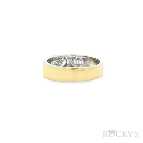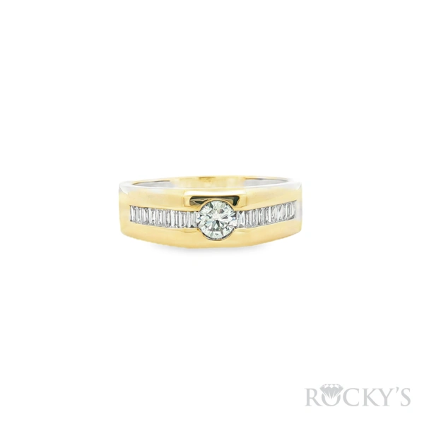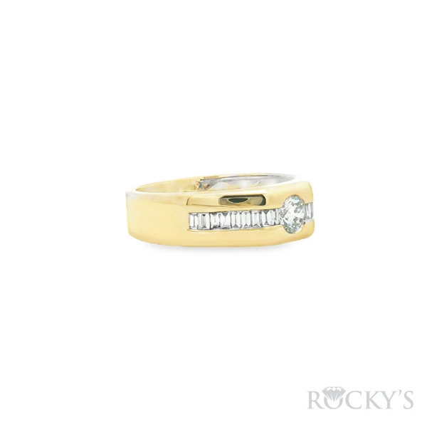 14 Karat Yellow Gold 14 Karat Men's Diamond Wedding Band Size 10.5 with 1: 0.403CT Round Cut G/H Color & SI Clarity Diamond and 0.403TWT Baguette Cut G/H Color & SI Clarity Diamonds