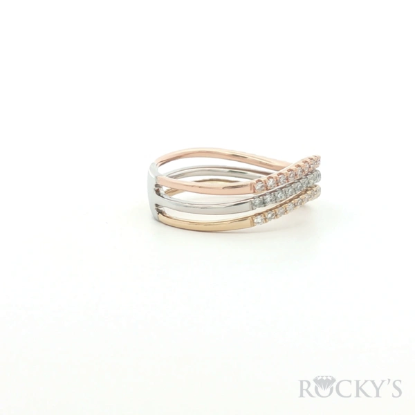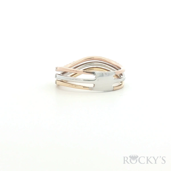 3Tone 14 Karat Diamond Fancy Rings - Womens Size 7 With 0.48Tw Round G/H Color and SI Clarity Diamonds