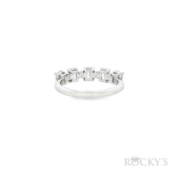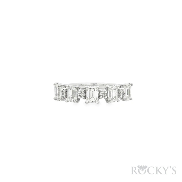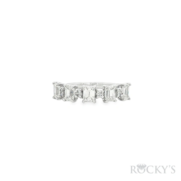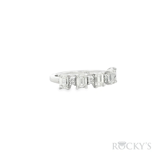 14 Karat White Gold Womens Diamond Fancy Rings, Size 6.5, with 5stn: 1.29TWT Emerald Cut G/H Color SI Clarity Diamonds and 4stn: 0.11TWT Round Cut G/H Color SI Clarity Diamonds
