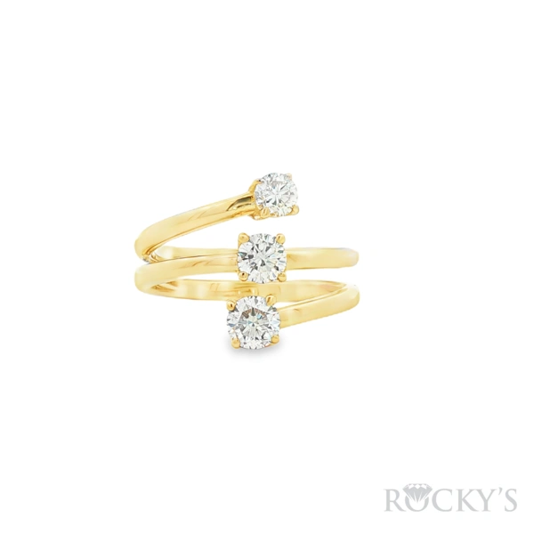 14 Karat Yellow Gold Diamond fancy Ring Size 7 with 0.89TWT Round Cut G/H Color SI Clarity Diamonds