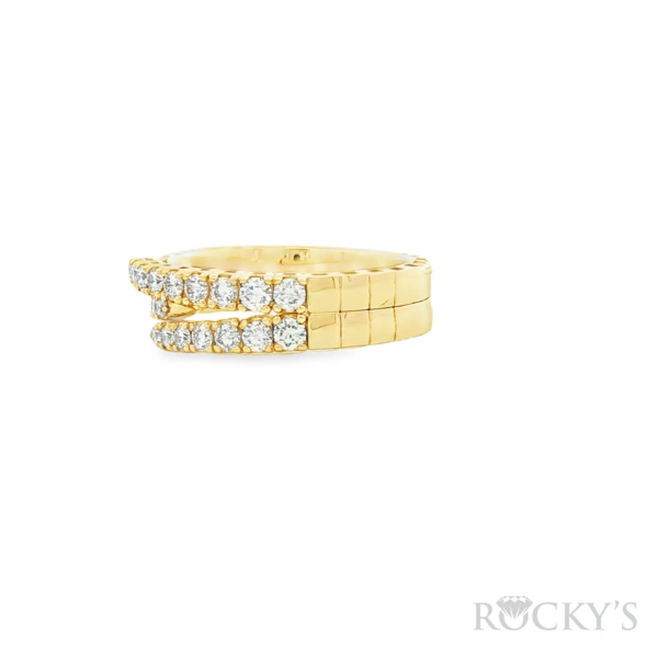 14 Karat Yellow Gold Diamond Fancy Flexible Ring Size 6.5 with 1.17TWT Round Cut G/H Color SI Clarity Diamonds