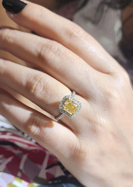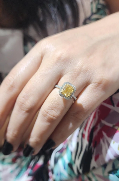 White 14 Karat Lab Grown Diamond Engagement Rings Size 6.5 one = 2.02ct Emerald cut Yellow VS Lab Diamond / 42 = 0.50tw Round White Lab Diamonds