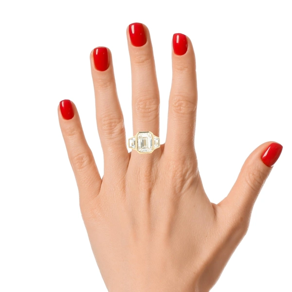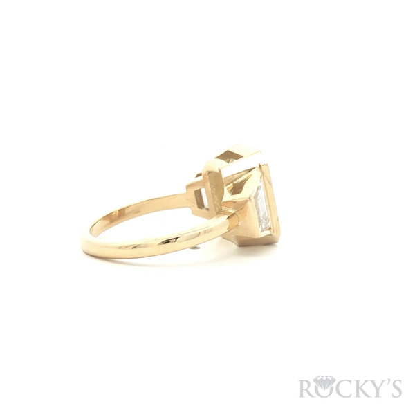 Yellow 18 Karat Lab Grown Diamond Engagement Rings Size 6.5 one = 4.35ct Emerald E VS Lab Diamond / 2 = 1.55tw Trapezoids White Lab Diamonds