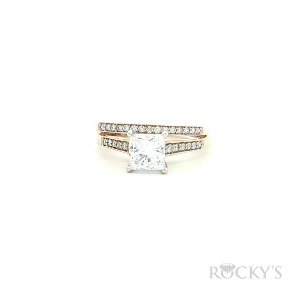 10 Karat Yellow Gold Lab Grown Diamond Bridal Set Rings, Size 7 With 1.28Twt Round E/F Color & VS1 Clarity Lab Diamonds
