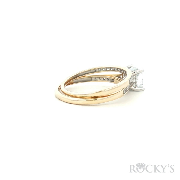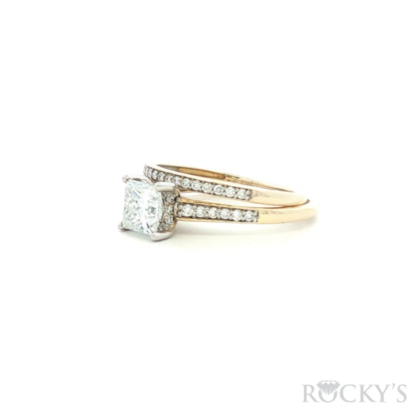 Yellow 10 Karat Lab Grown Diamond Bridal Set Rings, Size 7 With = 1.28Twt Round E/F VS1 Lab Diamonds