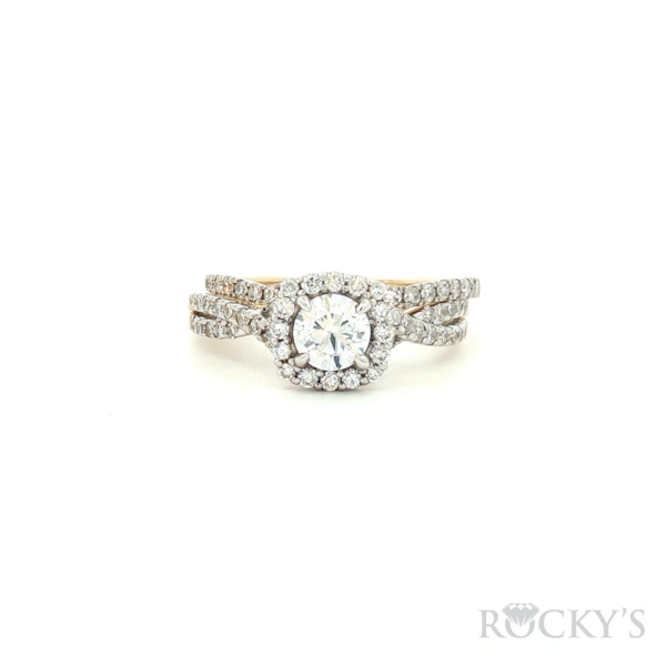 10 Karat Yellow Gold Lab Grown Diamond Bridal Set Rings, Size 7 With 1.00Twt Round E/F Color & VS1 Clarity Lab Diamonds
