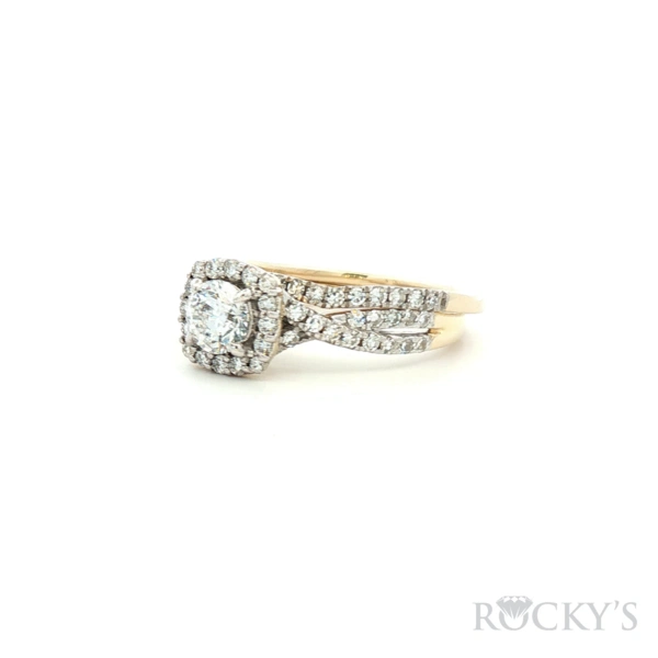 Yellow 10 Karat Lab Grown Diamond Bridal Set Rings, Size 7 With = 1.00Twt Round E/F VS1 Lab Diamonds