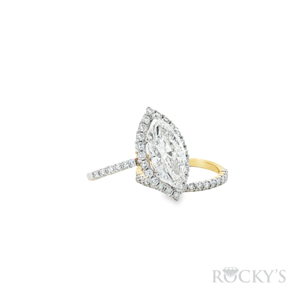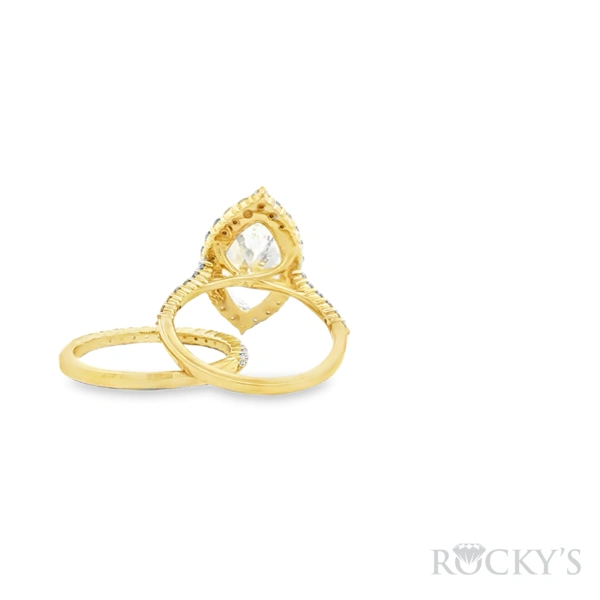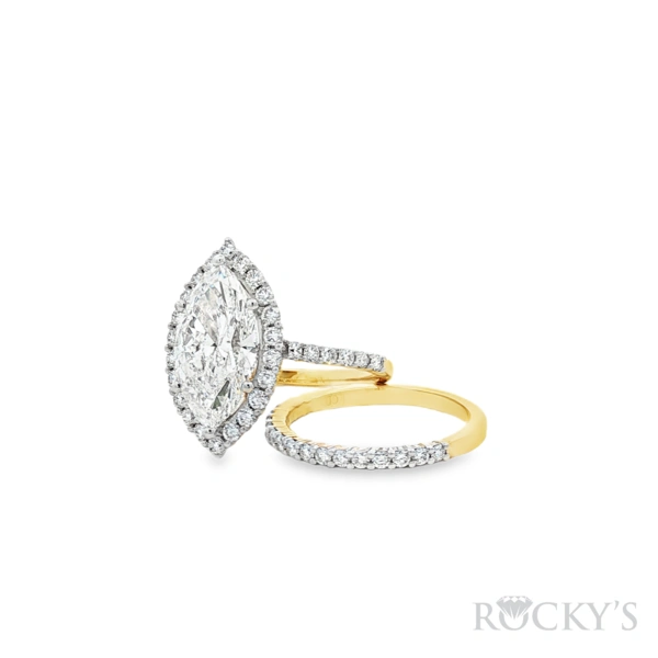 14 Karat Yellow Gold Lab Grown Diamond Engagement Ring and Wedding Band Set, Size 7 with 1: 4.01CT Marquise Cut F Color VS Clarity Lab Diamond and 51: 0.96TWT Round Cut E/F Color VS Clarity Lab Diamonds, Cert # IGI 73J368422510