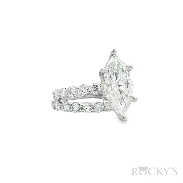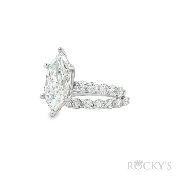 14 Karat White Gold Lab Grown Diamond Engagement Ring, Size 7 with 1: 4.01TWT Marquise Cut F Color VS Clarity Lab Diamonds and 21: 1.99TWT Round Cut E/F Color VS Clarity Lab Diamonds, IGI 70J053322510