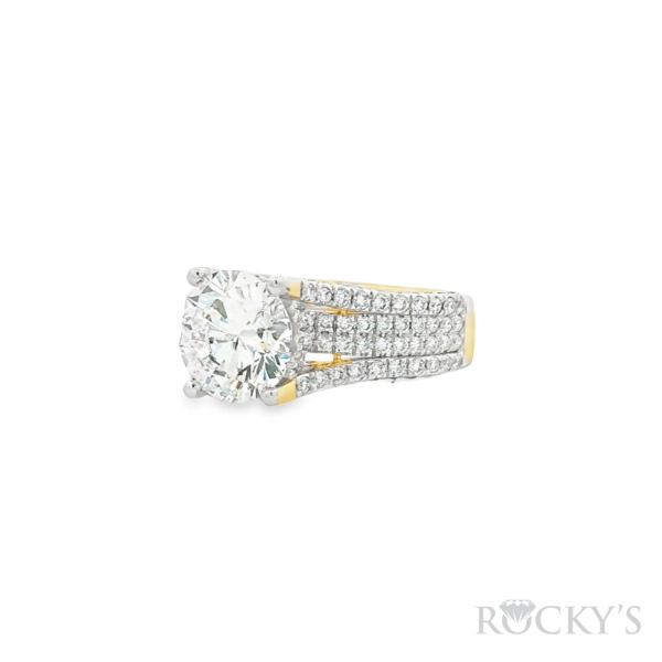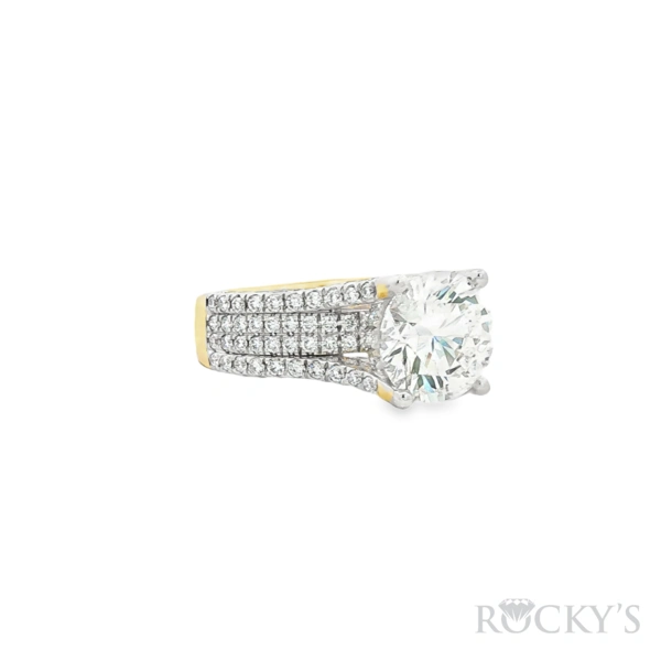 Yellow Gold 14 Karat Lab Grown Diamond Engagement Ring & Wedding Band Set Size 7 with 1: 3.02TWT Round Cut F Color VS Clarity Lab Diamonds and 148: 1.29TWT Round Cut E/F Color VS Clarity Lab Diamonds, IGI 13J420822601