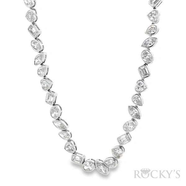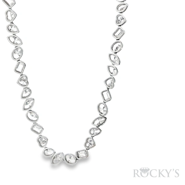 14 Karat White Gold Lab Grown Diamonds Necklace, Size 18, with 74st: 26.64ctw E/F Color & VS Clarity Lab Diamonds. (15XMQ / 15XEM / 15XOV / 15XHRT / 14XPear Shape)