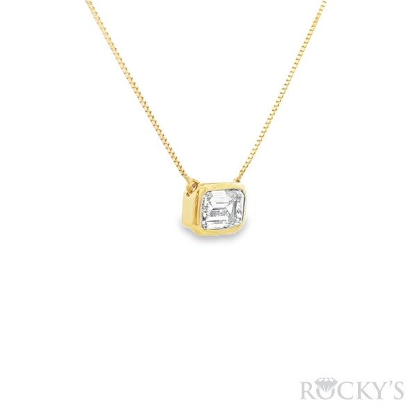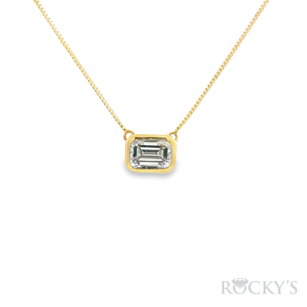 14 Karat Yellow Gold Lab Grown Diamonds Necklace with 1.01CT Emerald Cut F Color VS Clarity Lab Diamond (16" Chain attached), Cert #IGI 13J428612601