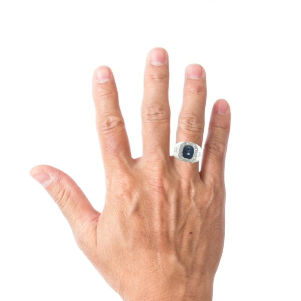 Gent's White Platinum Men's Rings Size 11 With One = 5.14Ct Cushion Blue Sapphire And = 0.57Tw Round G/H SI Diamonds, GIA 7531105467, Size 11