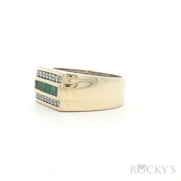 Yellow Platinum & 14Kt Gold Fashion Ring Size 10.5 With 0.56Tw Baguette Emeralds And 0.408Tw Round Gh Color and Si Clarity Diamonds