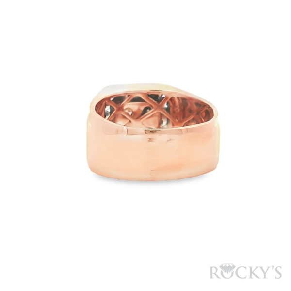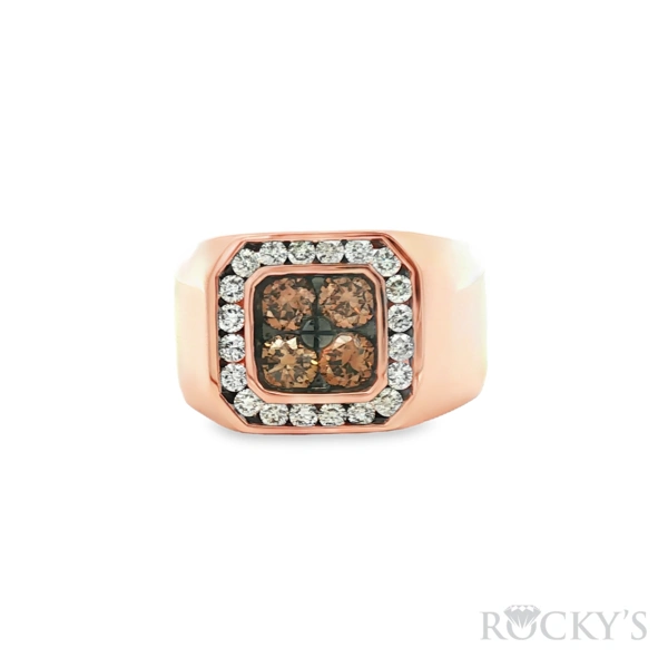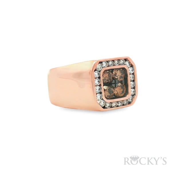 14 Karat Rose Gold Men's Rings Size 10.5 with 4 :1.165TWT Round Cut Brown Diamonds and 0.61TWT Round Cut G/H Color & SI Clarity white Diamonds