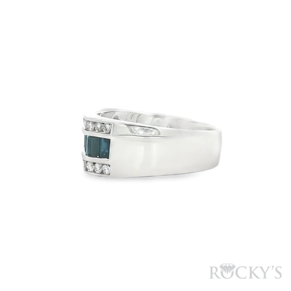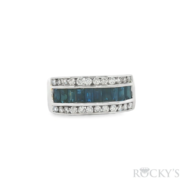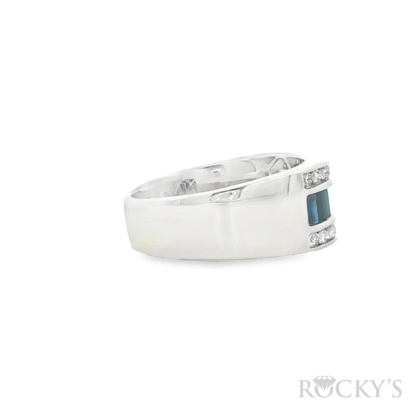 14 Karat White Gold Men's Sapphire Ring Size 10.5 with 1.72TWT Baguette Cut Sapphires