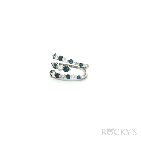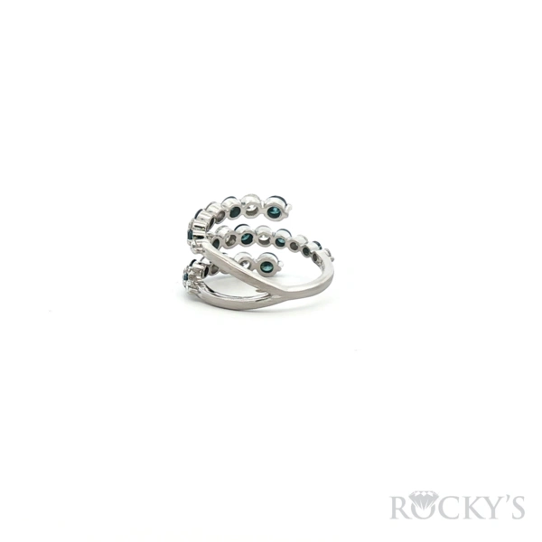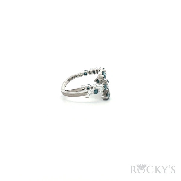 White 14 Karat Color Diamond Ring Size 6 With = 0.76Tw Round G/H Si Diamonds And = 0.94Tw Round Blue Diamonds