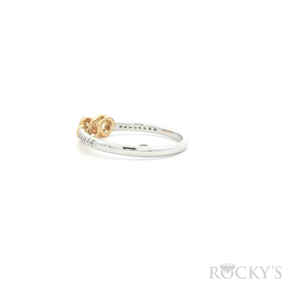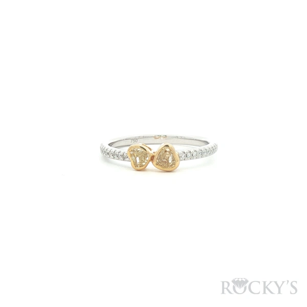 18 Karat 2Tone Gold, Color Diamond Ring With 2 / 0.252Tw Heart shape Yellow Diamonds And 18 /0.066Tw Round G/H Color & SI Clarity white Diamonds, Ring Size 6