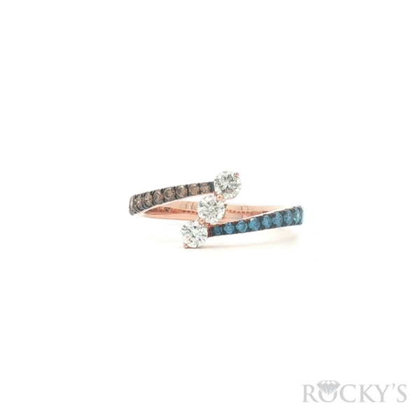 14 Karat Rose Gold, Color Diamond Ring, Size 7.5 With 0.24Tw Round Brown Diamonds, 0.23Tw Round Blue Diamonds And 0.39 Twt Round G/H Color & SI Clarity White Diamonds