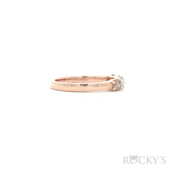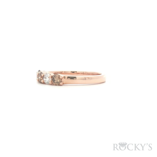 14 Karat Rose Gold, Color Diamond Ring, Size 7.5 With 3/ 0.48Tw Round Brown Diamonds, and 2/ 0.30Tw Round G/H Color and SI Clarity White Diamonds