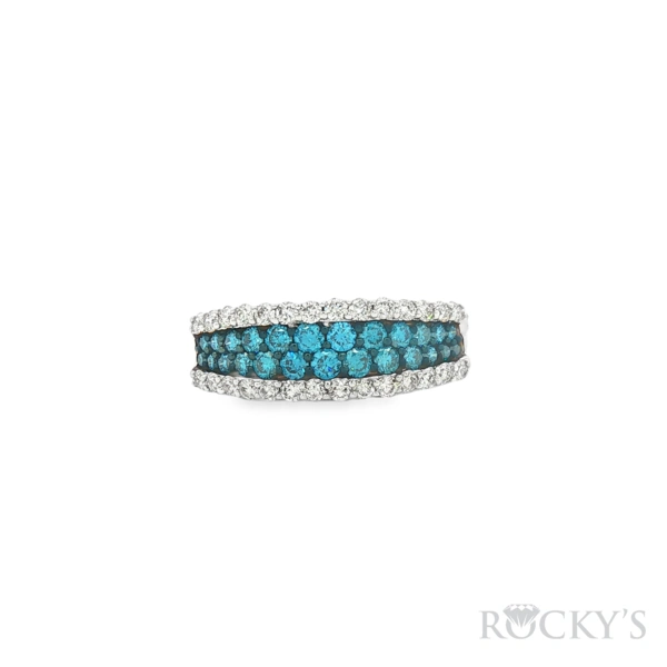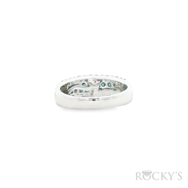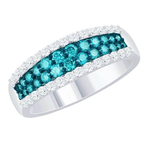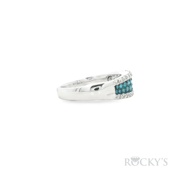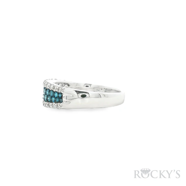 14 Karat White Gold Color Diamond Ring Size 7.5 with 0.55TWT Round Cut Blue Diamonds
