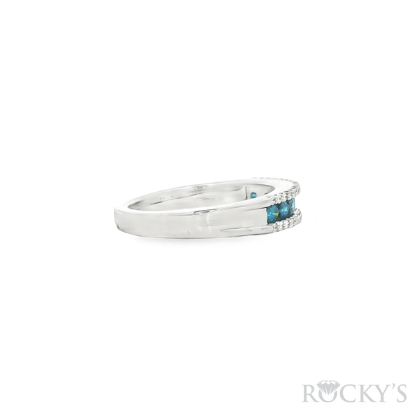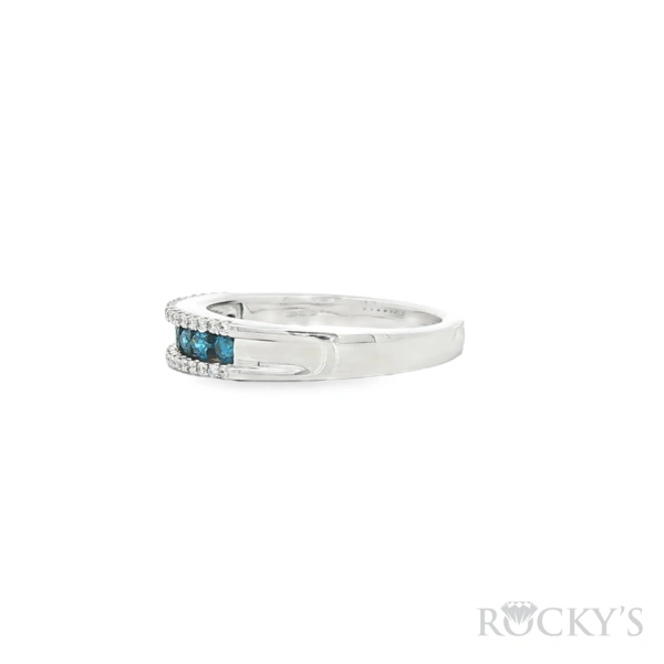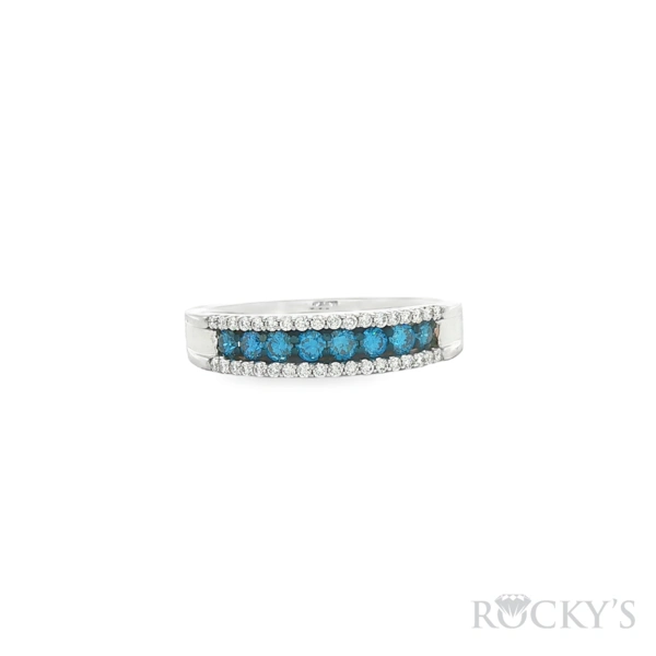 14 Karat Blue Diamond Ring Size 7.5 with 0.35TWT Round Cut Blue Diamonds