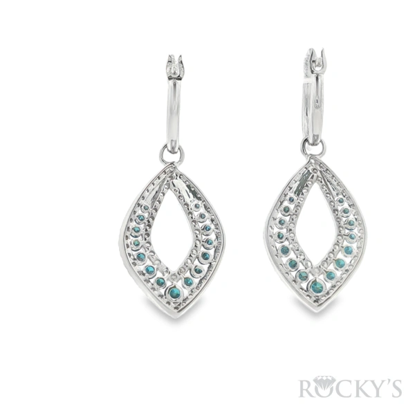 14 Karat White Gold Blue Diamond Earring with 0.51TWT Round Cut Blue Diamonds