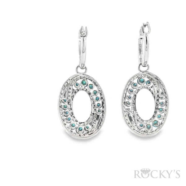 14 Karat White Gold Blue Diamond Earrings with 0.65TWT Round Cut Blue Diamonds