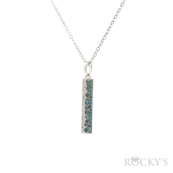 14 Karat White Gold, Color Diamond Pendant With 0.15Tw Round G/H Color & SI Clarity White Diamonds And 0.42Tw Round Blue Diamonds (Blue Diamond Pendant - Chain Excluded)