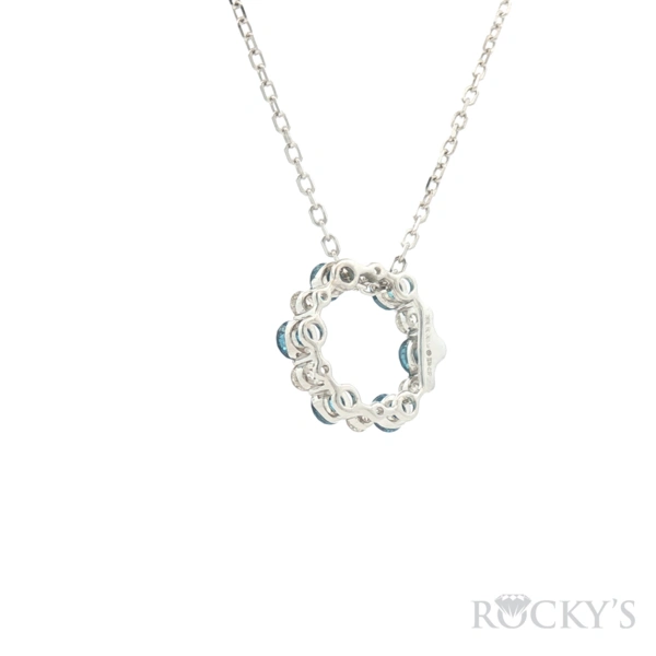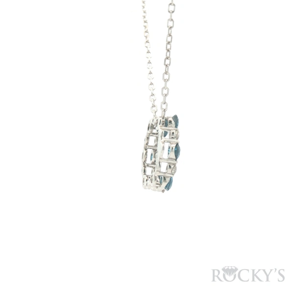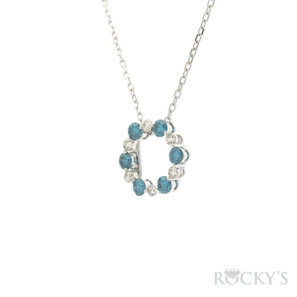 14 Karat White Gold, Color Diamond Pendant With 6 / 0.72Tw Round Blue Diamonds And 6/0.25Tw Round G/H Color & SI Clarity White Diamonds - (Blue Diamond Pendant