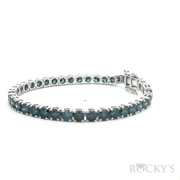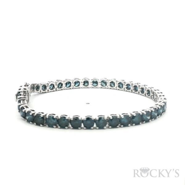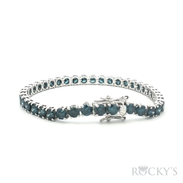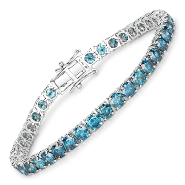 14 Karat White Gold Color Diamond Bracelet With 12.95Tw Round Blue Diamonds