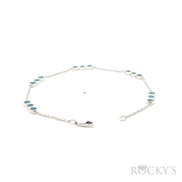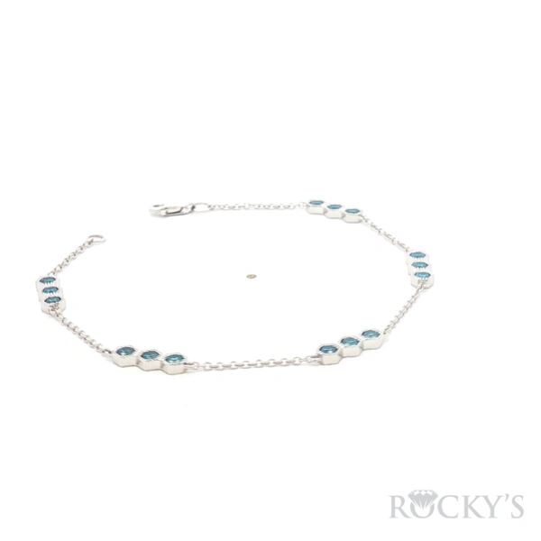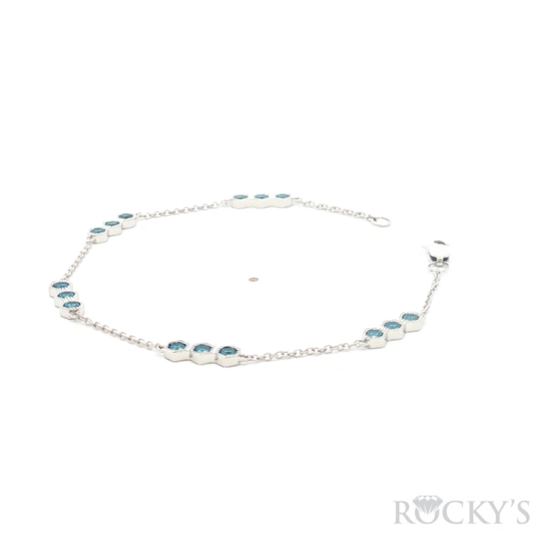 14 Karat White Gold Color Diamond Bracelet 0.99TWT Round cut Blue Diamonds, Wrist Size: 7 inches