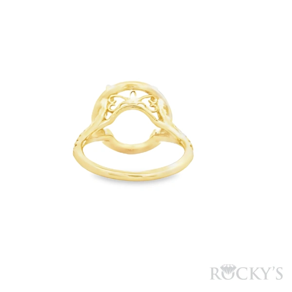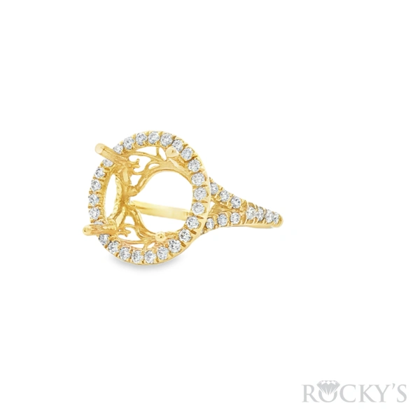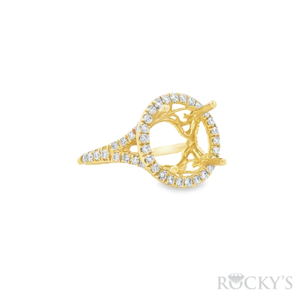 14 Karat Yellow Gold Lab Grown Semi Mount Ring, Size 6.5, with 50st:0.60TWT Round Cut E/F Color VS Clarity Lab Diamonds, 13X11mm Oval Split
