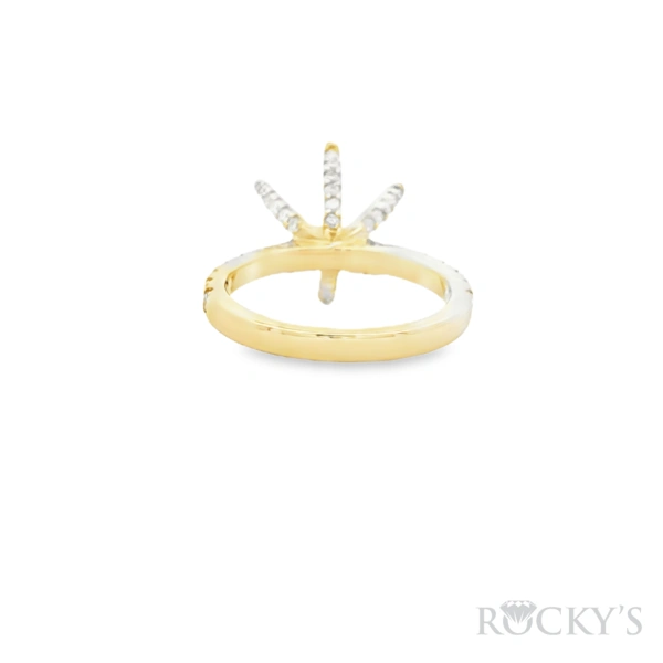 14 Karat Yellow Gold Lab Grown Semi Mount Ring, Size 6, with 46st:0.71TWT Round Cut E/F Color VS Clarity Lab Diamonds, 11.5mm Round Split