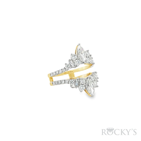 14 Karat Yellow Gold Lab Grown Semi Mount Ring, 38stn: 2.00TWT (Round/Marquise/Baguette) E/F Color & VS Clarity Lab Diamonds, Ring Size 7, IGI 84J276132512