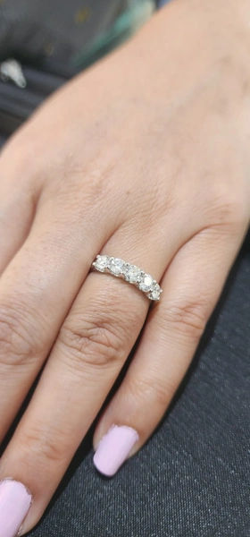 White 10 Karat 5 Stone Lab Grown Diamond Wedding Bands Size 7 With 5 Stones of 1.00Tw Round Lab Diamonds Cert. No. LABBELLE24J00000800 - Lab Grown Diamond Ring