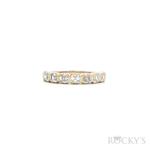 Yellow 14 Karat Lab Grown Diamond Wedding Bands Size 6.5 With 9 = 1.41Tw Asscher E Vs Lab Diamonds, WOMEN