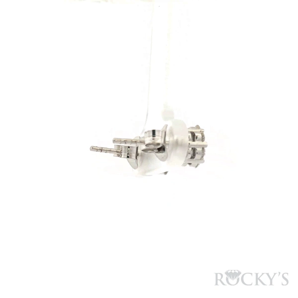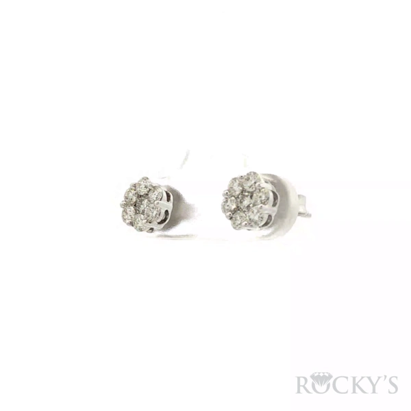 White 14 Karat Cluster Stud Earrings With 14 Stones, 0.74ctw Round G VS Diamonds