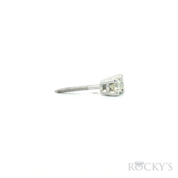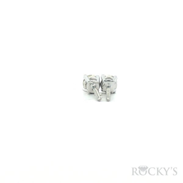 14 Karat white gold Diamond Earrings With 2 = 0.50Twt Round Cut G/H Color & SI Clarity Diamonds, 4 Prong Basket setting with Screw Backs