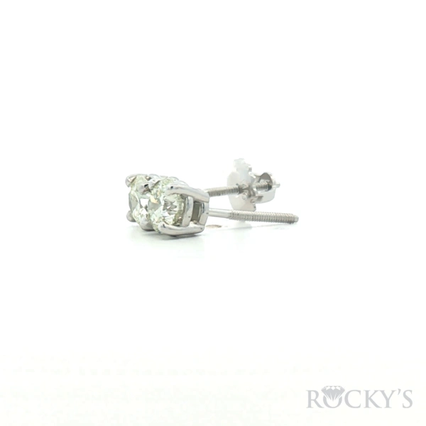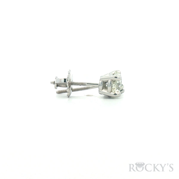 14 Karat white gold Diamond Earrings With 2 = 1.16Twt Round Cut G/H Color & SI Clarity Diamonds, 4 Prong Basket setting with Screw Backs