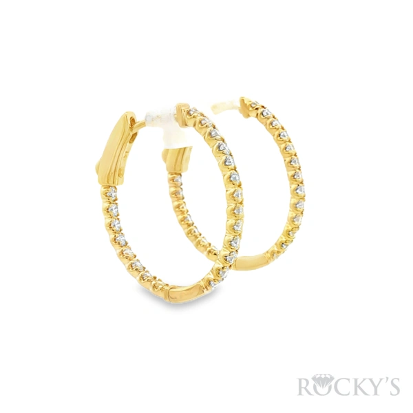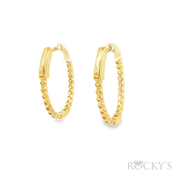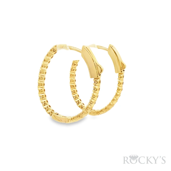 14 Karat Yellow Gold Diamond Oval Shape Hoop Earring with 0.90TWT Round Cut white Diamonds