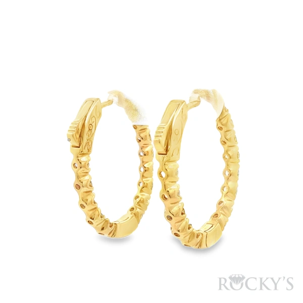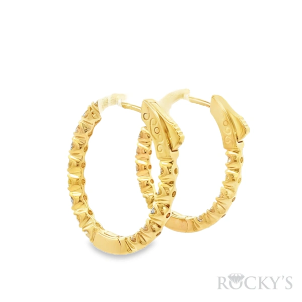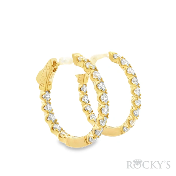 14 Karat Yellow Gold Diamond Oval Shape Hoop Earring with 2.50TWT Round Cut white Diamonds