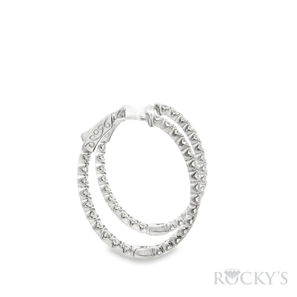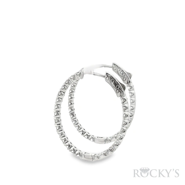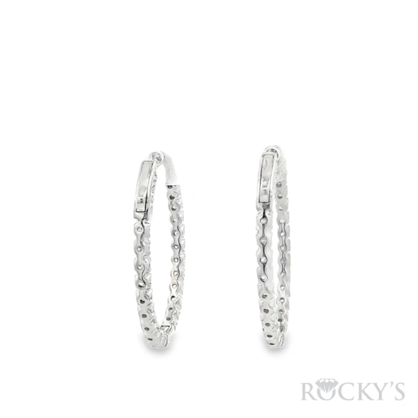 14 Karat White Gold Diamond Oval Shape Hoop Earring with 1.95TWT Round Cut G/H Color SI Clarity Diamonds