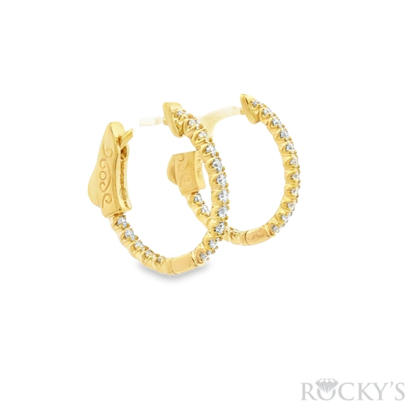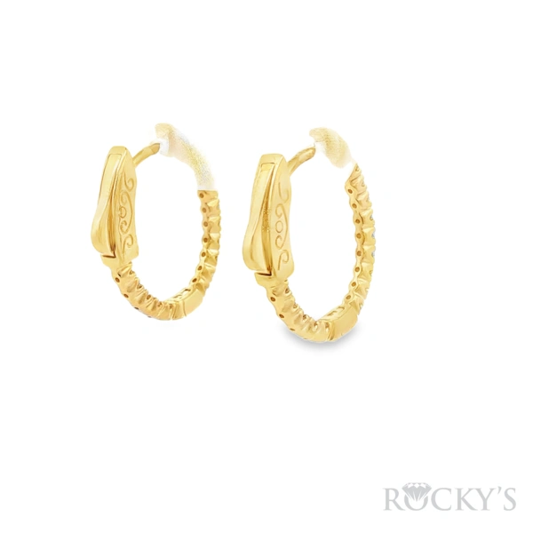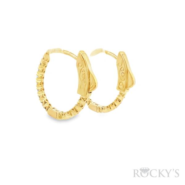 14 Karat Yellow Gold Diamond Oval Shape Hoop Earrings with 0.48TWT Round Cut G/H Color SI Clarity Diamonds