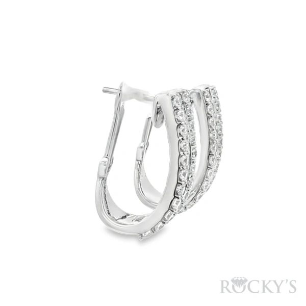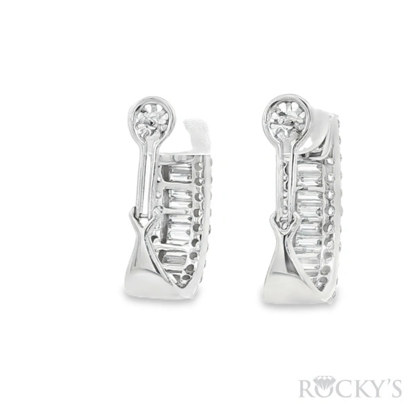 14 Karat Wihte Gold Diamond French Clip Earrings with 2.41TWT Baguette Cut G/H Color SI Clarity Diamonds and 1.71TWT Round Cut G/H Color SI Clarity Diamonds