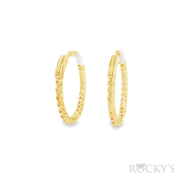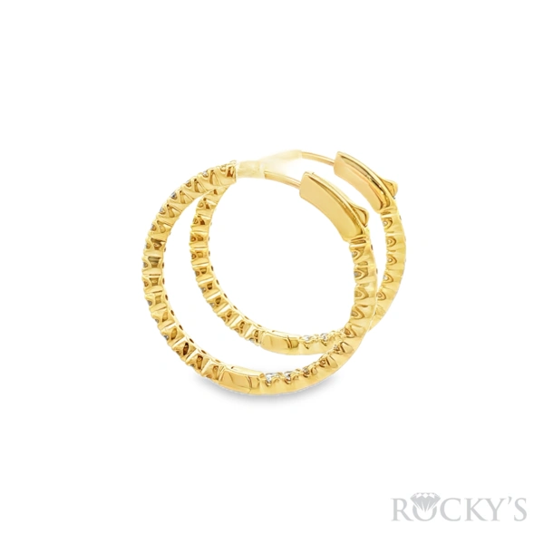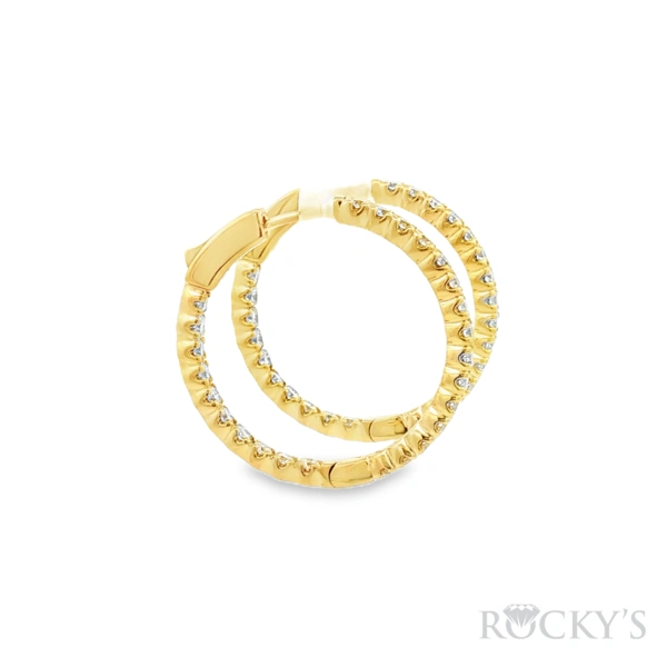14 Karat Yellow Gold Diamond Round Shape Hoop Earrings with 1.91TWT Round Cut G/H Color SI Clarity Diamonds