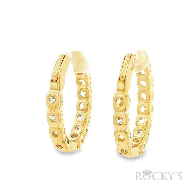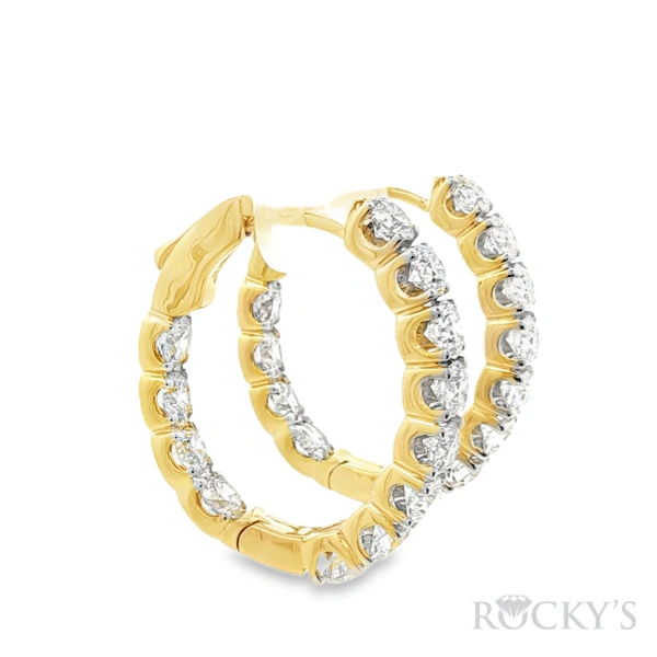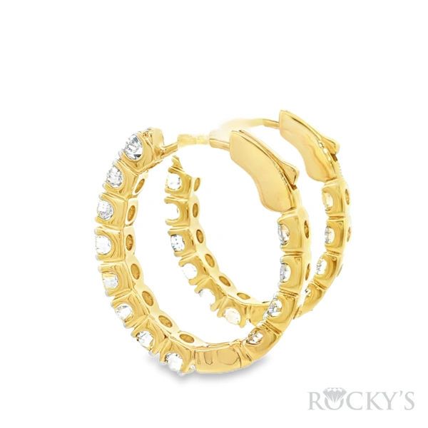 14 Karat Yellow Gold Diamond Hoop Earrings with 24 Round Brilliant Cut 4.894TWT G/H Color and SI Clarity Diamonds, IGI 14J046352601