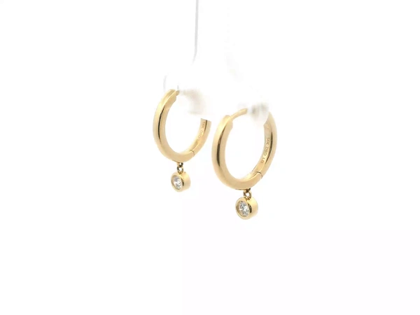 Yellow 14 Karat small Earring hoops With 0.15Tw Round E Vs1 Lab Diamonds
