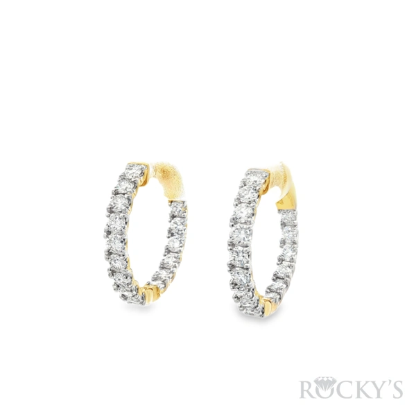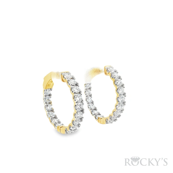 14 Karat Yellow Gold Lab Grown Diamonds Hoop Earrings with 1.98CT Round Cut E/F Color VS Clarity Lab Diamond, Cert # LABBELLE26J000009109